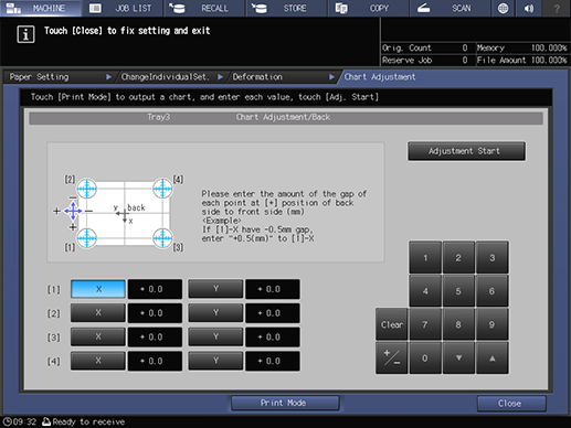 Touch panel - [MACHINE] - [Reg./Del.PaperSet.] - [Add/Edit] - [Both Sides Adj.] - [Deformation] | |||
