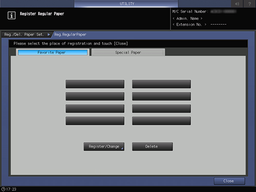 Control panel - Utility/Counter - [User Setting] - [System Setting] - [Paper Tray Setting] - [Paper Setting] - [Paper Profile Setting] - [Reg.RegularPaper]
