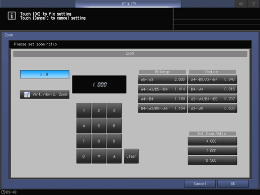 Control panel - Utility/Counter - [User Setting] - [Initial Setting] - [Store Initial Setting] - [Zoom]
