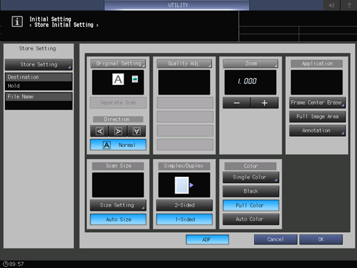 Control panel - Utility/Counter - [User Setting] - [Initial Setting] - [Store Initial Setting]