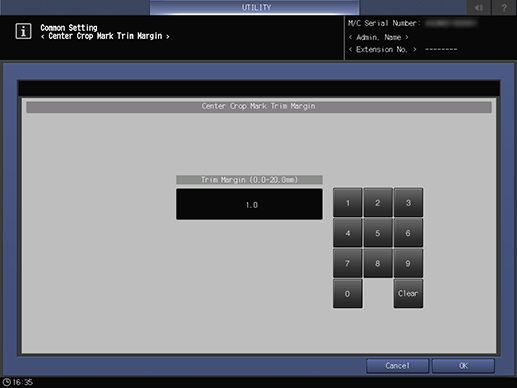 The [Center Crop Mark Trim Margin] screen is displayed.