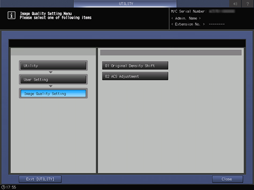 Control panel - Utility/Counter - [User Setting] - [Image Quality Setting]