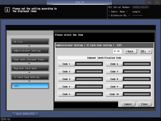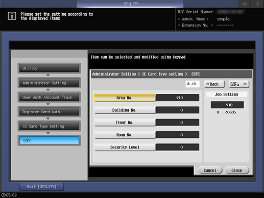 Sets in case [SSFC] is selected using [IC Card type setting].