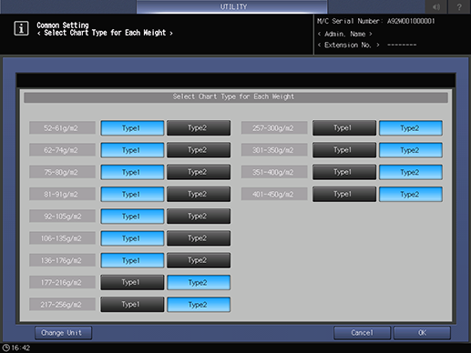 Control panel - Utility/Counter - [Administrator Setting] - [Common Setting] - [Select Chart Type (Auto Image Adj.)] | |||