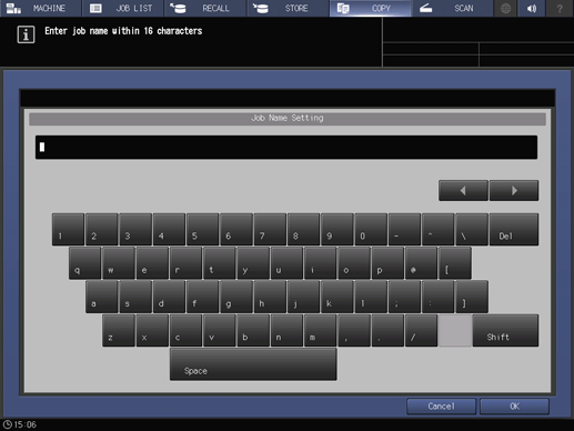 A program name can be entered using up to 16 single-byte characters (8 double-byte characters). For details about how to enter characters, refer to Entering Text.