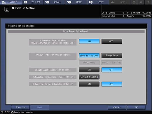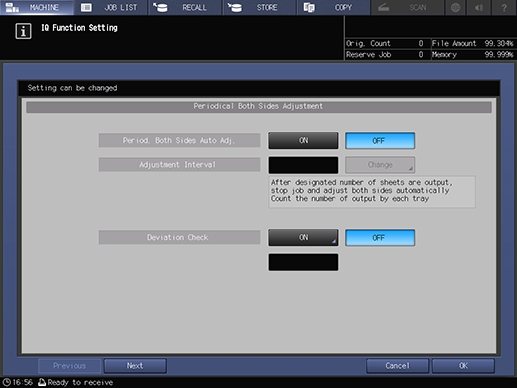 Touch panel - [MACHINE] - [IQ Function Set.]