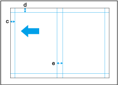 [Lead Edge] | Sets the cut position at the lead edge using the value from the lead edge of paper. Set the value in the range of 10 mm to 13 mm / 0.394" to 0.512", and also set the cutting amount at the rear edge in the range of 10 mm to 13 mm / 0.394" to 0.512". The rear edge position is automatically calculated from the paper size (widthwise), finishing size, lead edge position, and gutter slit width (vertical direction). Rear edge position = Paper size (widthwise) - Finishing size (width) - Lead edge position - Gutter slit width (vertical direction) Unit: 0.1 mm / 0.004" | ||