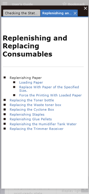 Tapping each menu in the User's Guide displays content in the text page.