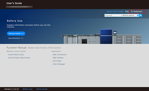 Clicking or tapping [Bookmark] in the User's Guide displays a list of registered pages, enabling you to easily view the target page.