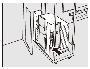 Delivery to the perfect binder tray is available even if the carriage is not mounted inside the perfect binder tray. In this case, tray capacity is a half of that with the carriage mounted. (1 set 30 mm thick