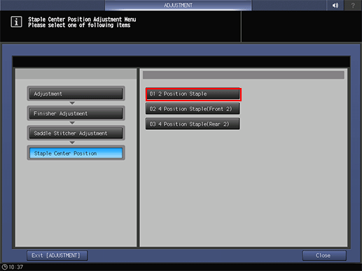 The screen returns to the [Staple Center Position Adjustment Menu] screen.