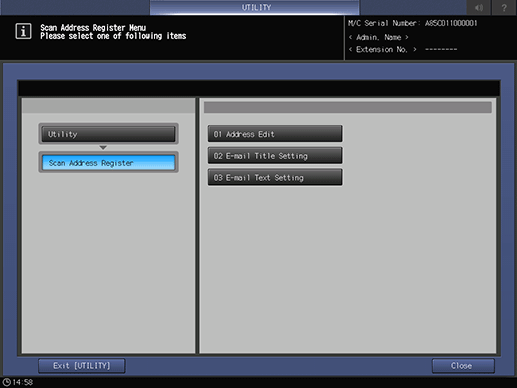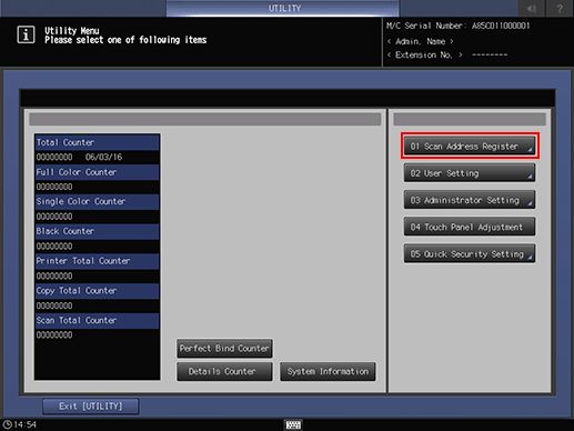To exit the [UTILITY] screen, press [Exit [UTILITY]].