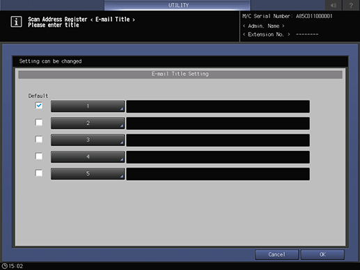 [E-mail Title Setting] | Register up to 5 E-mail subjects. Also, edit registered subjects. |