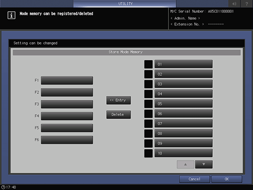 To display the Store Mode Memory shortcut keys under the [STORE] screen, press [Store Mode Memory] to display the registration screen.