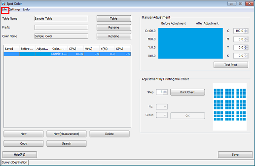 After checking that the spot color is saved, close the screen by selecting [Close] from the [File] menu.
