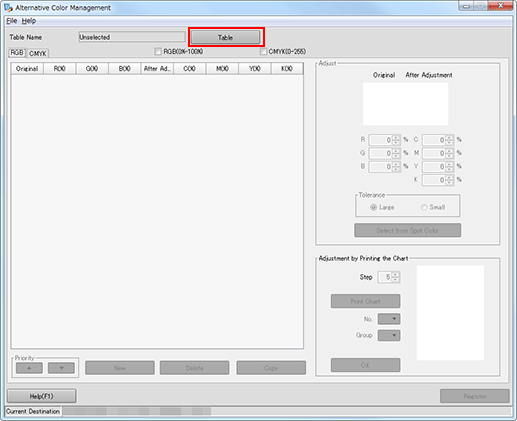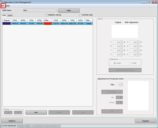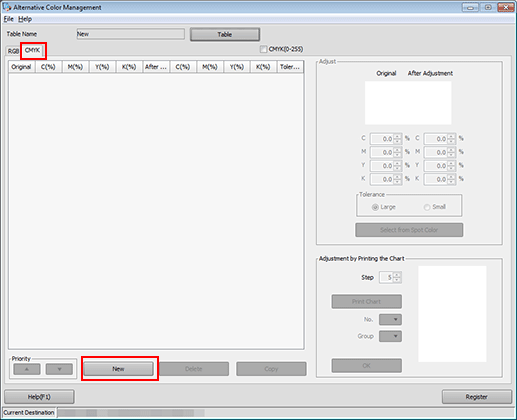 The colors being set are displayed under [Adjust]. Color in [Original] indicates the source CMYK color while the color in [After Adjustment] indicates the alternative color.