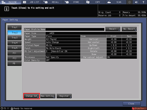 On a daily basis, you change a paper setting in the [Change IndividualSet] screen.