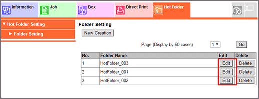 This displays the [Folder Setting] screen in [Hot Folder Setting].