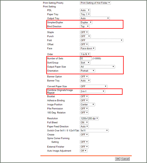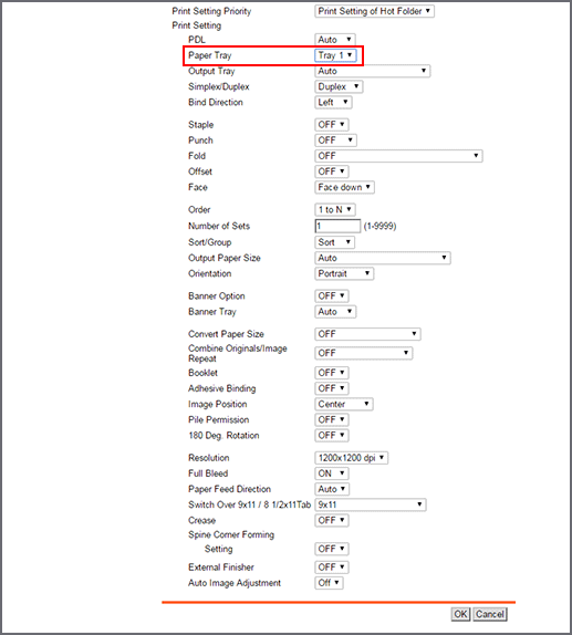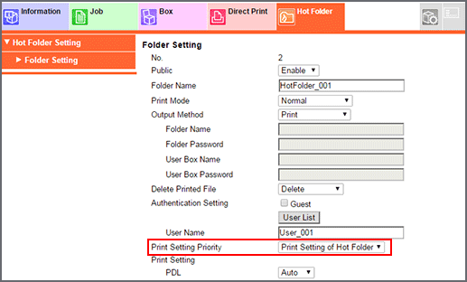 In [Print Setting Priority], select [Print Setting of Hot Folder].