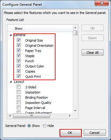 On the [Configure General Panel] screen, select setting items you want to display on the [General] screen.