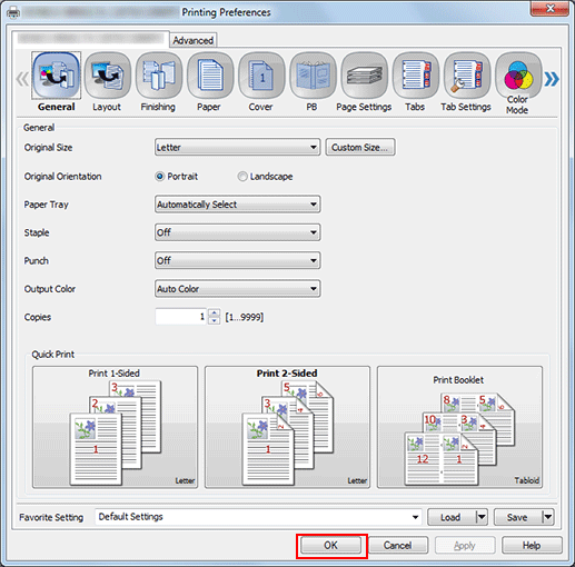 Select the printer to use for printing and click [Properties].