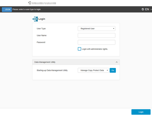 Registered user | Log in as the registered user when user authentication is enabled. In this mode, you can perform settings and operations for registered users. | |