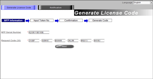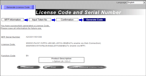 Registering the license enables you to obtain the license code. Register the license code in this machine to enable the function.