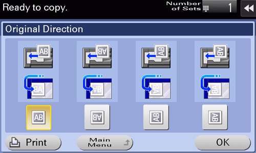 Tap [Original/Density] - [Original Direction], and specify the original loading direction.