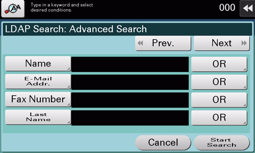 Tap [LDAP Search] - [Search] or [Advanced Search].