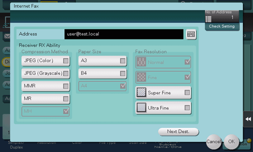 [Receiver RX Ability] | Specify the Internet fax receiving ability of the recipient.