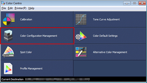 Start Color Centro, and click Color Configuration on the top screen. (Refer to Start Color Centro.)