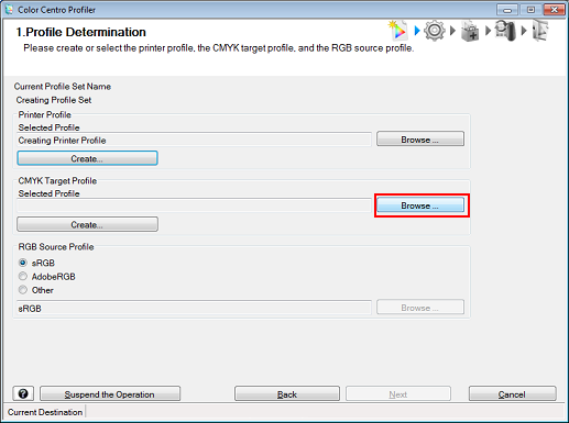 supplementary explanationTo select an existing printer profile, click Browse and select a profile.