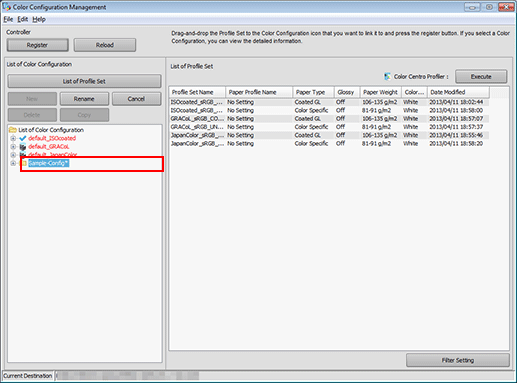You can create a color configuration with Color Centro and register existing profile sets to activate the color configuration.