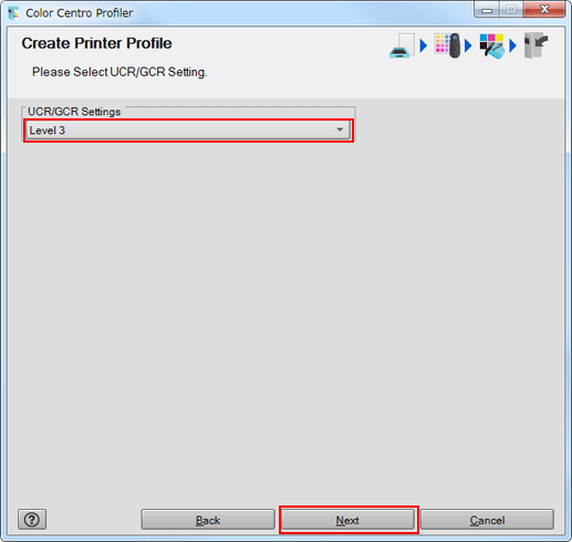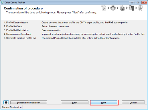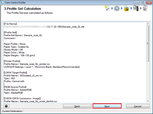 After checking that the selected tray and paper information are correctly displayed under Tray/Paper Profile Information, click Next.