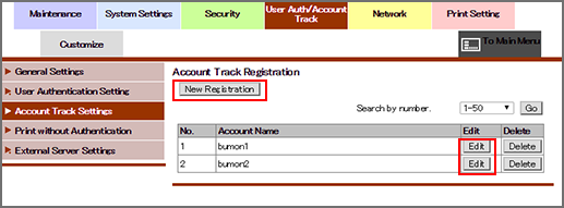 Click New Registration to register a new account, or click Edit for a desired account name to edit the data already registered.