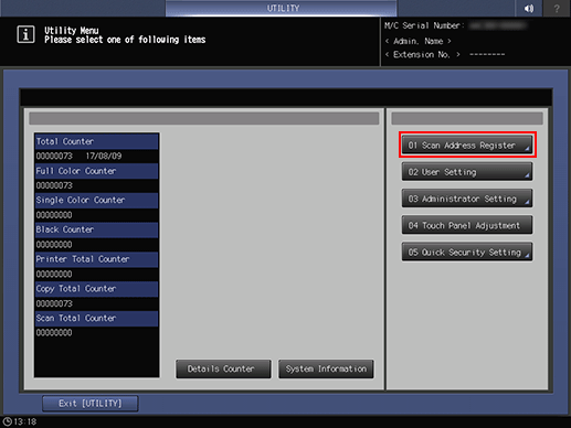 • supplementary explanation To exit the UTILITY screen, press Exit [UTILITY].