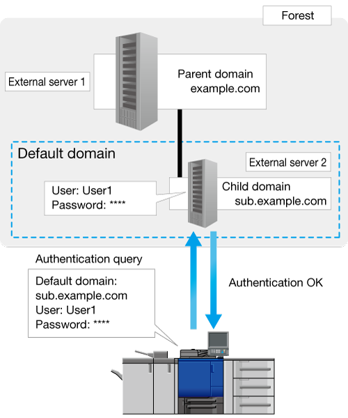 * For example, if there is a server for which an authenticated user is registered in a child domain (sub.example.com), the child domain is set as the default domain.