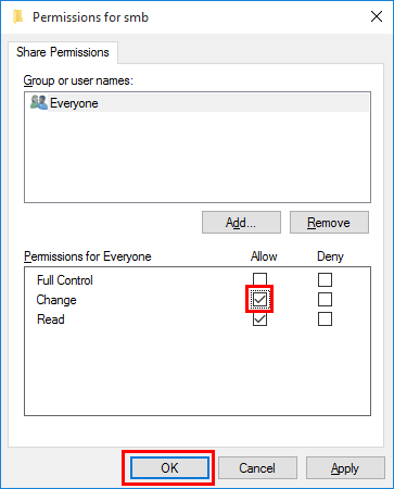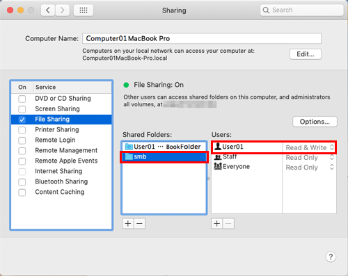 • Check that the user name you wrote down in a previous step is displayed and the access rights are set to [Read & Write].