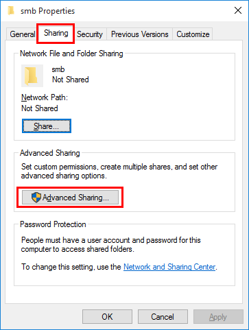 9. Click the [Sharing] tab, and also click [Advanced Sharing].
