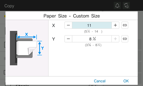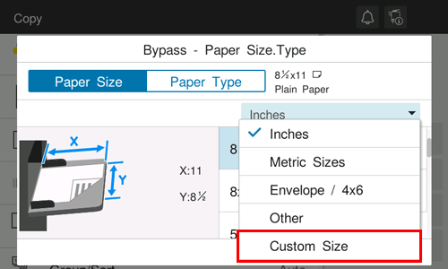 Tap [Custom Size] from the drop-down list of [Paper Size].