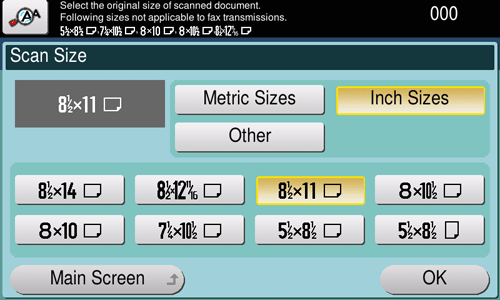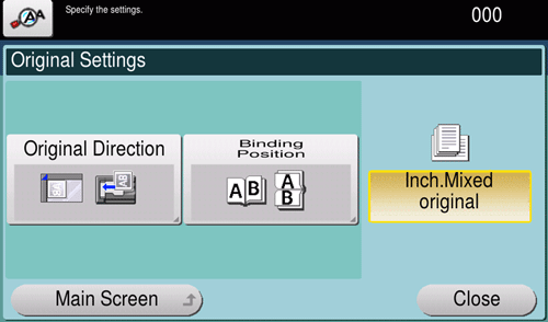 Tap [Scan Settings] - [Original Settings] - [Inch.Mixed original].