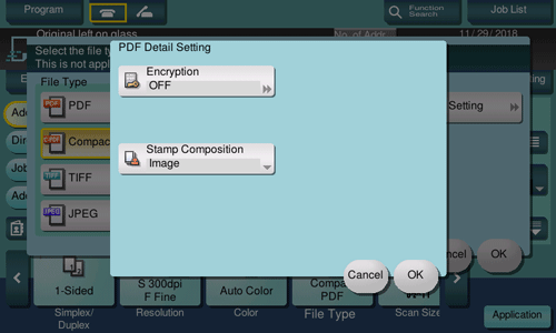 If [PDF] or [Compact PDF] is selected for file format, you can configure the PDF option settings.