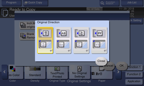 When scanning a 2-sided original, specify the original loading direction so that the vertical direction of the scanned original is set correctly.