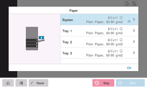 When using plain paper of 15-15/16 lb to 18-5/8 lb (60 g/m2 to 70 g/m2), tap the setting icon (