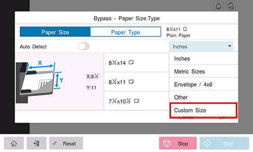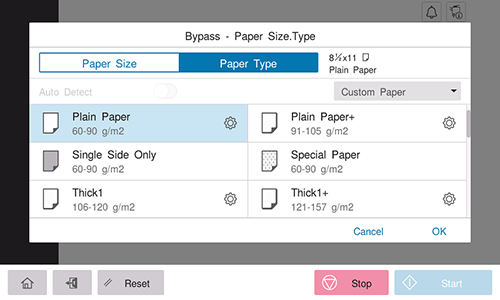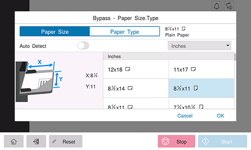 Setting [Auto Detect] to ON automatically detects the size of the loaded paper.