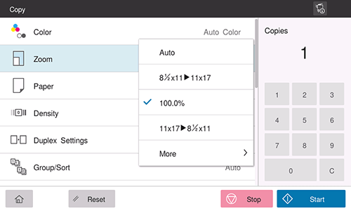[Original Size] | Select the size of the original to be copied. |