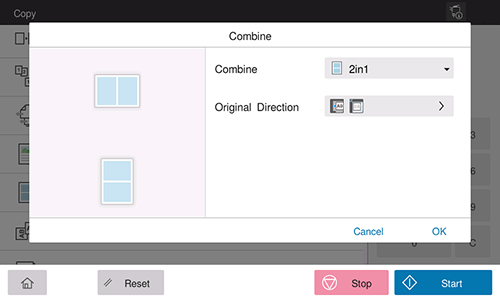 In [Combine], select the number of pages to copy on the same side of a single sheet.