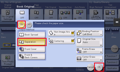 Tap [ON], select [Separation], then tap [OK].