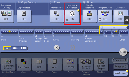 Tap [Application], select [Non-Image Area Erase], then select [ON].