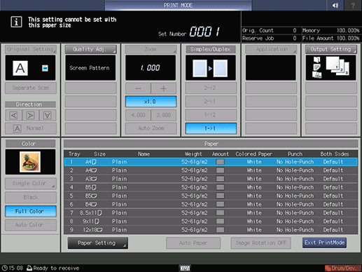 supplementary explanationLoad paper of A3 short edge feed, 11 17 short edge feed, 12 18 short edge feed, 13 19 short edge feed, or SRA3 short edge feed into a tray, then select that tray button.